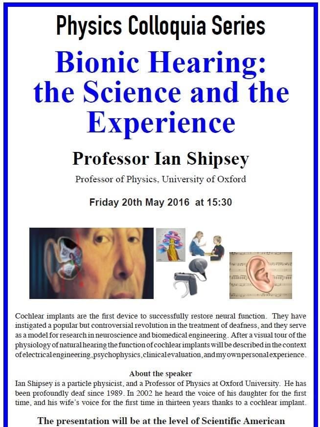 1989年Ian Shipsey教授成為重度耳聾患者,後通過人工耳蝸恢復了部分聽力。