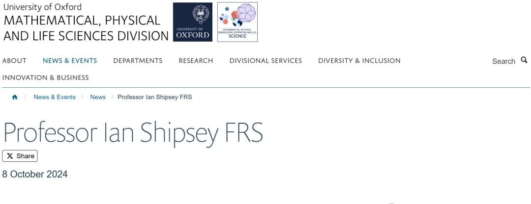 2018年起,Ian Shipsey教授開始擔任牛津物理系主任,並於2023年連任第。
