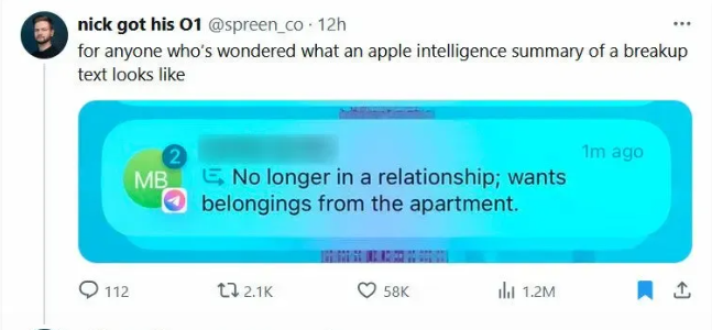 幾天前,網上曾流出一張圖,詮釋了蘋果AI現有的總結信息摘要的能力,無情而又冷酷,甚至又有些搞笑。