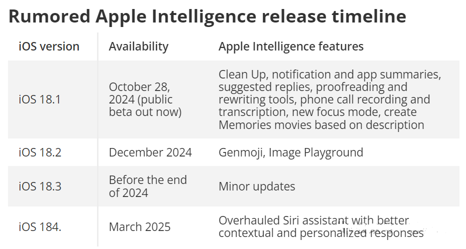 根據時間線,蘋果AI功能發佈在即(預計將在10月28日推出)。