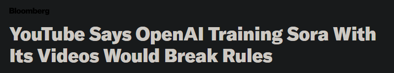 3月,OpenAI首席技術官Mira Murati在接受彭博採訪時,對Sora使用YouTube數據訓練,語焉不詳。