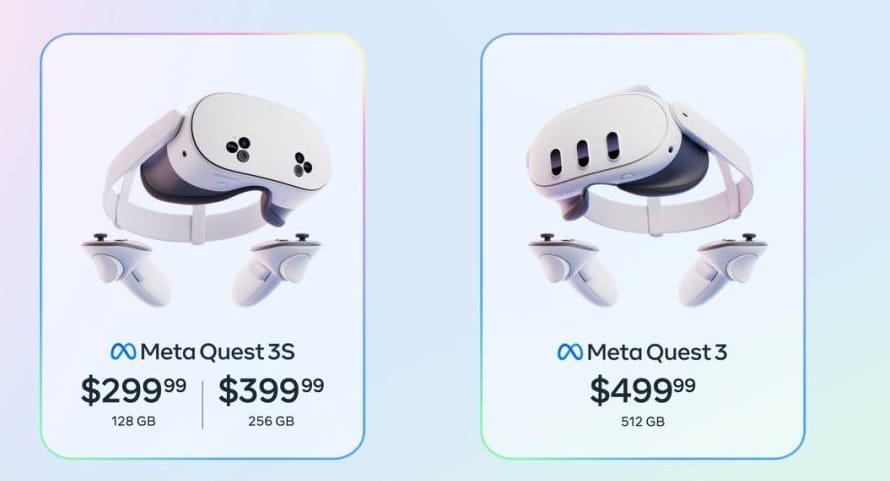 根據官方定價,配備128GB入門級Quest3S,僅需299.99美元。256GB存儲空間,售價399.99美元。