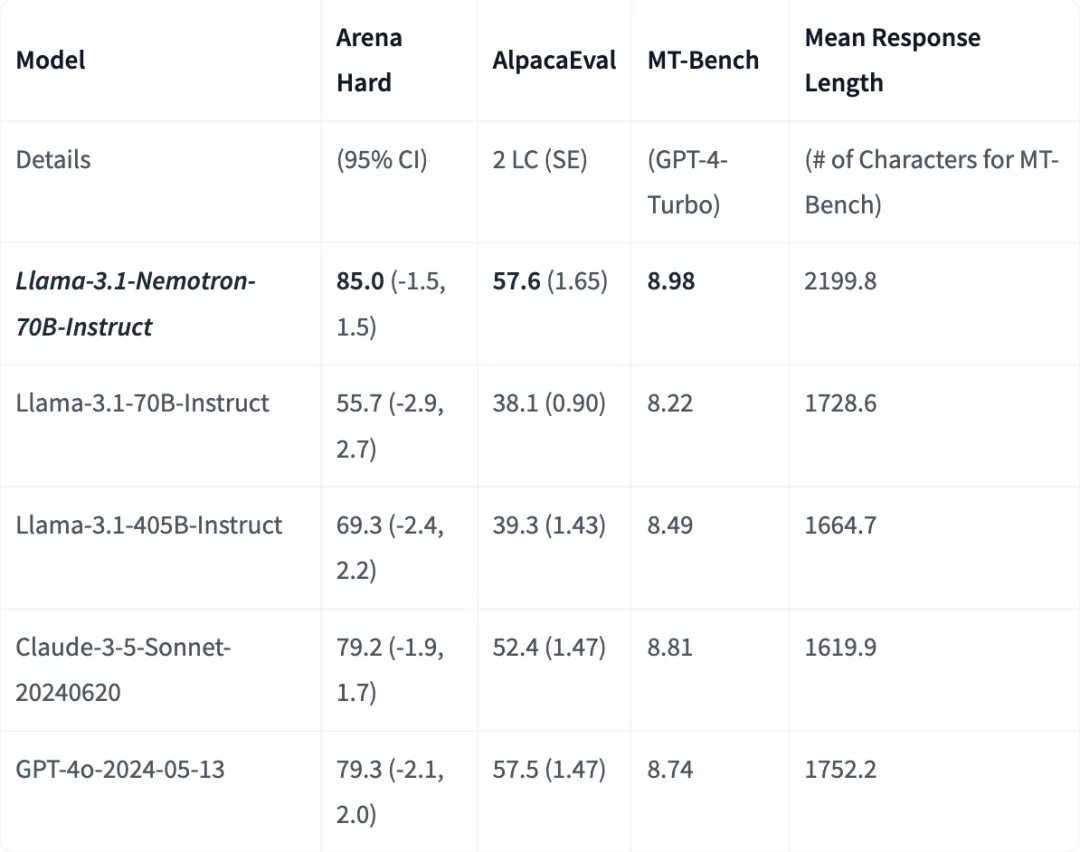 英偉達也加入 LLM 軍備競賽了!🚀 他們基於 Llama 3.1 打造的 Nemotron-70B-Instruct 開源模型,在 Arena Hard、AlpacaEval 2 LC 和 MT Bench 三大自動對齊基準測試中全部登頂開源第一!並且吊打閉源 GPT-4o 和 Claude 3.5 Sonnet!