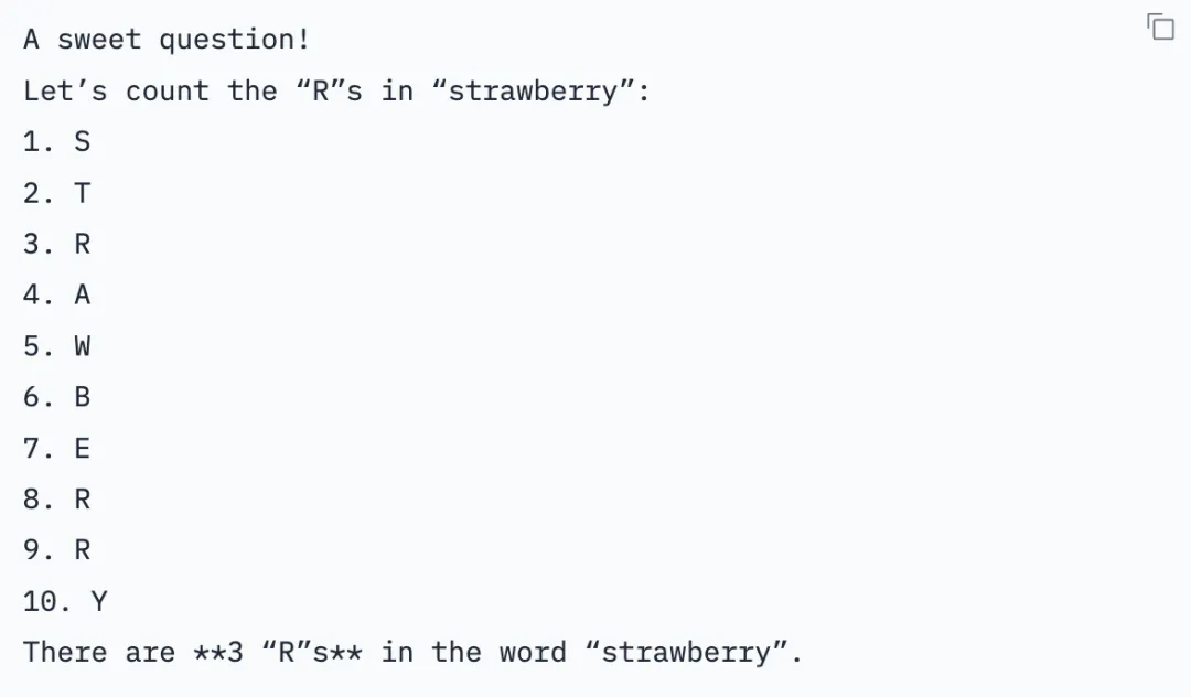 輕鬆答對How many r in strawberry?: 它可以正確回答“草莓裏有多少個 r” 這個一直困擾各種先進模型的問題,而且不需要特殊的提示或額外的推理 token!😅