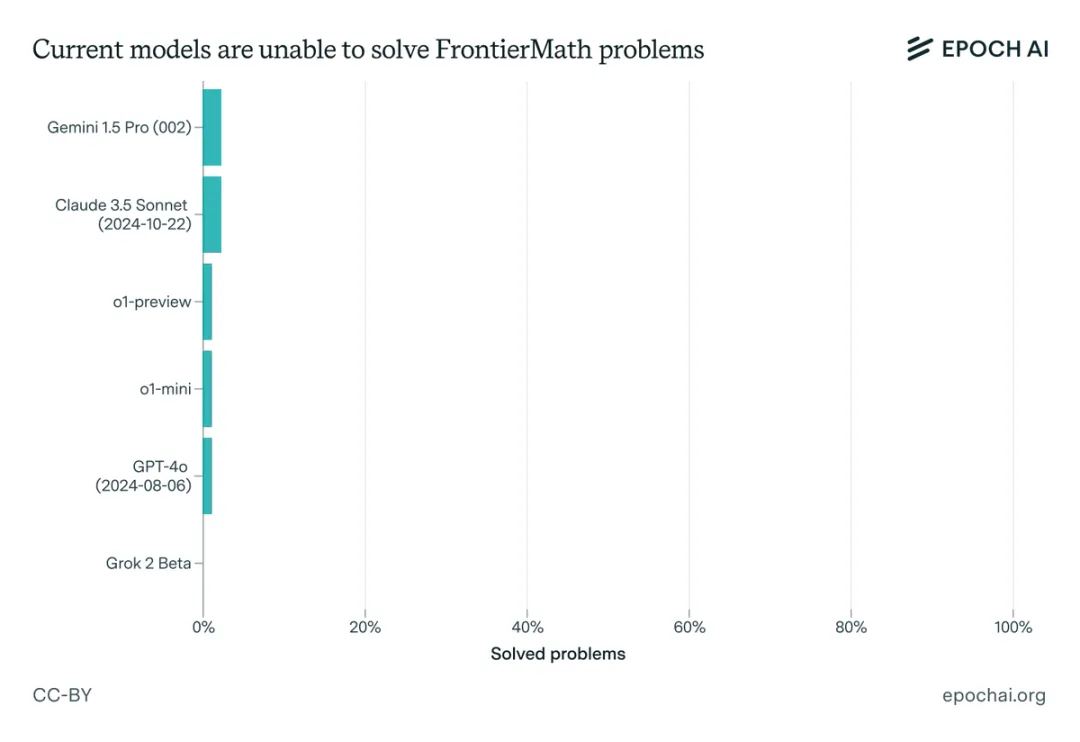 大型語言模型(LLM)最近在各種數學benchmark上瘋狂刷分,動輒90%以上的正確率,搞得好像要統治數學界一樣。然而,Epoch AI看不下去了,聯手60多位頂尖數學家,憋了個大招——FrontierMath,一個專治LLM各種不服的全新數學推理測試!結果慘不忍睹,LLM集體“翻車”,正確率竟然不到2%!🤡