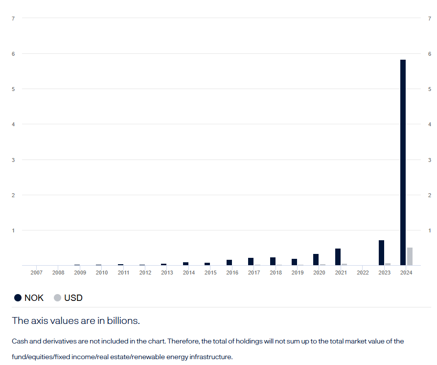 GPFG 的主要目標是通過全球多元化投資來實現穩定的財務增長。該基金的投資範圍包括全球股票、債券、不動產和可再生能源基礎設施。GPFG 擁有約 1.5% 的全球上市公司股份,投資市值高達 1.7 兆美元。