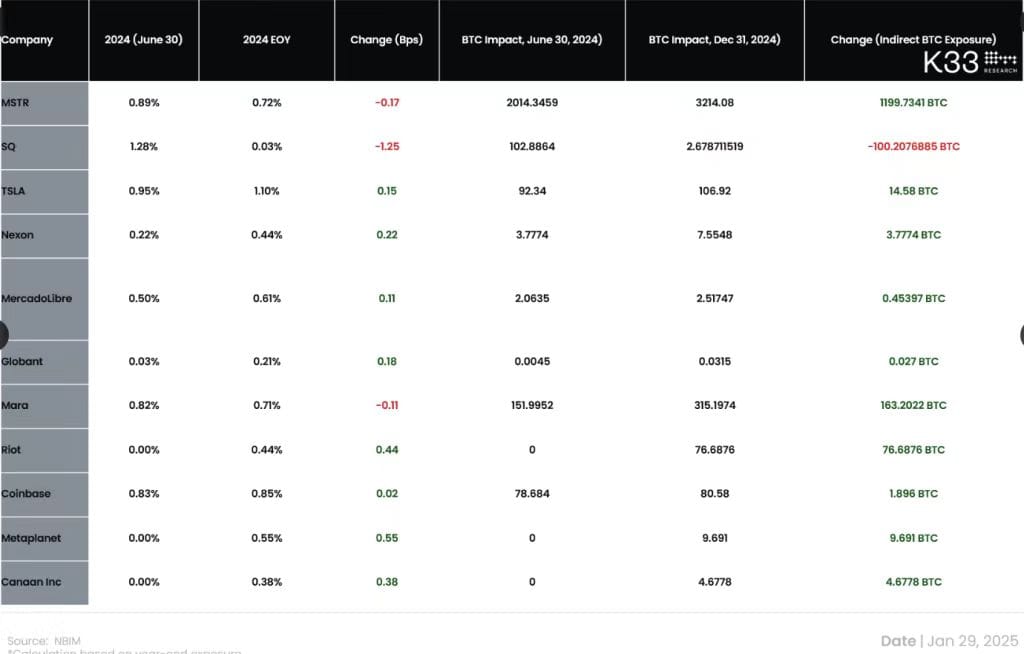 截至 2024 年年底,NBIM 持有微策略約 0.72% 的股份,價值 5.14 億美元,這相當於間接持有 3,214.08 枚比特幣。