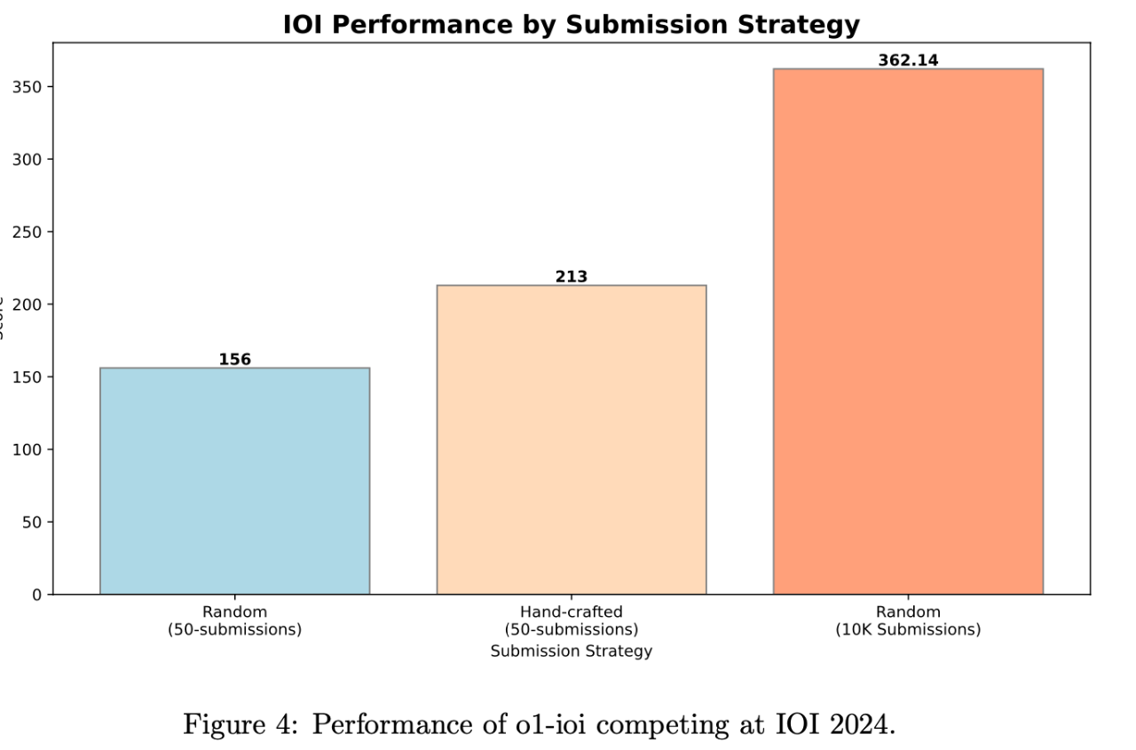OpenAI 的目標遠不止於此。為了挑戰更具含金量的 國際信息學奧林匹克競賽 (IOI),他們對 o1 模型進行了 專項強化訓練,並打造了 o1-ioi 模型。同時,為了確保在 IOI 這種高強度競賽中取得好成績,研究團隊還 “祭出” 了 手工打造的測試時策略 (hand-crafted test-time strategies)