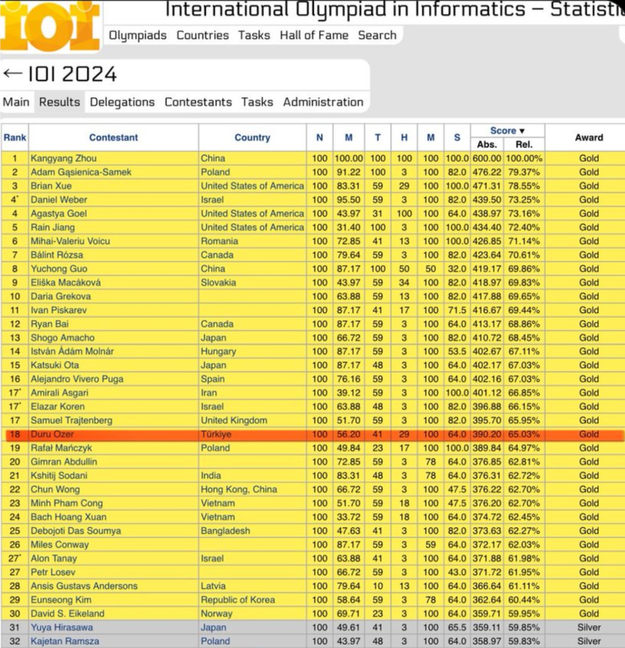 OpenAI o3 在 2024 年國際信息學奧林匹克競賽(IOI)中獲得 395.64分(滿分 600 分),獲得金牌,世界排名第 18 位。該模型沒有受到這些數據的污染,並且使用了 50 次提交限制。這也印證了奧特曼的説法今年我們很可能會看到超人的編碼模型