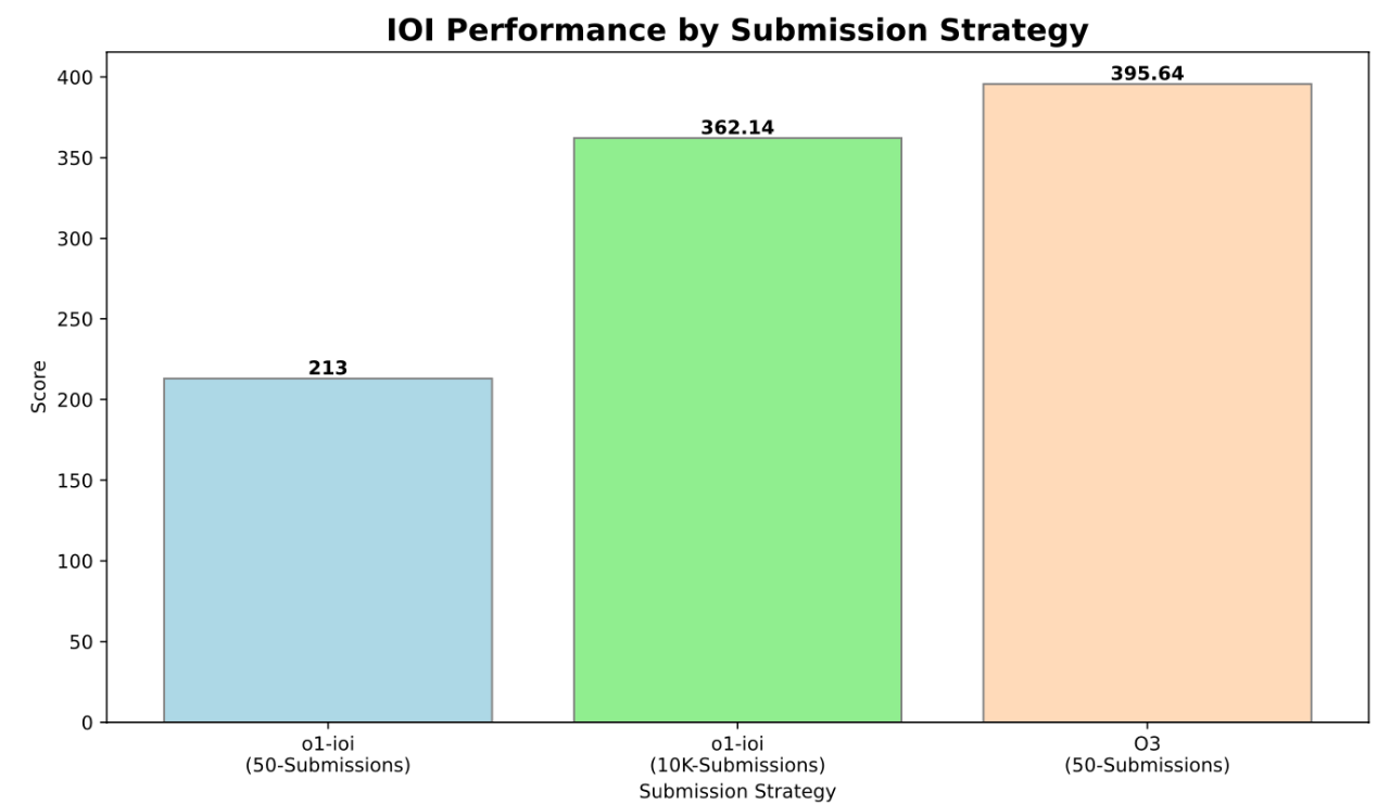 o3 模型在沒有任何人工策略輔助的情況下,竟然在官方 IOI 競賽的嚴格約束下,也成功斬獲金牌! 🏆 得分高達 395.64 分,進一步超越金牌線