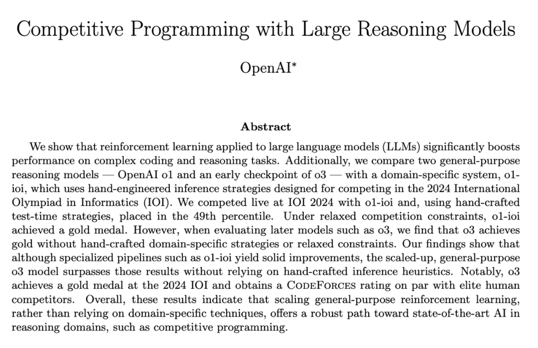 OpenAI 這次報告的核心,其實還是他們一直強調的 強化學習 (Reinforcement Learning, RL) 。報告一開始就明確指出,RL 是提升大型語言模型 (LLMs) 在複雜編程和推理任務上性能的 關鍵驅動力