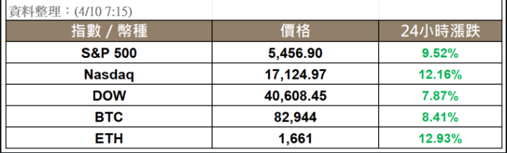 川普對懲罰性關稅暫停 90 天,股市飆漲