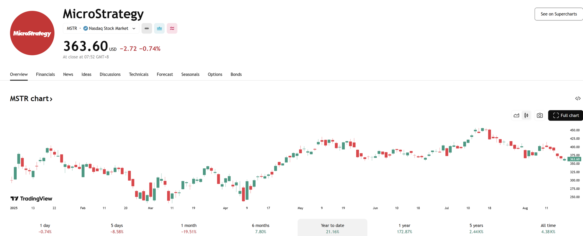 MSTR 股價近期走勢疲弱,昨日宣布買幣後仍下跌 0.74%,收在 363.6 美元,而距離其可積極發 MSTR 新股的 600 美元仍有一段很長的距離。其 mNAV 目前為 1.61 倍。