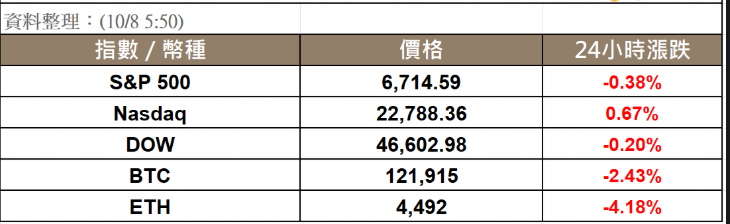 受甲骨文下跌影響,標普 500 結束連續 7 天的上漲。比特幣 (BTC▼) 創新高 126K 後回落,以太幣 (ETH▼) 亦由 4,700 上方回跌,加密市場 24 小時有高達 5.88 億美元的部位遭清算。BNB▲ 再創 1,345 美元的歷史新高,超越 XRP、USDT,成市值第三大加密貨幣。