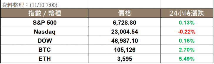 美國政府持續停擺,消費者信心指數接近歷史低點,那斯達克指數受人工智慧股票進一步下跌的影響週五收低。加密貨幣整體市值上漲 2.16% 至 3.52 兆美元,比特幣 (BTC▲) 重回 105K,以太幣 (ETH▲) 24 小時上漲 5.49%,美國現貨比特幣 ETF 上週五淨流出 5.58 億美元,是自 8 月 1 日以來最大的單日流出額,但美國商品期貨交易委員會 (CFTC) 代理主席 Caroline Pham 週末證實,正積極於推動 Designated Contract Markets(DCMs)上的零售現貨加密貨幣產品,帶動市場些許樂觀情緒。