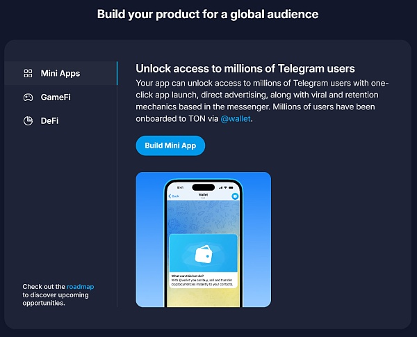 根據TON官網頁面顯示,Mini Apps、GameFi、DeFi是官方想要onboarding的重點產品類型。