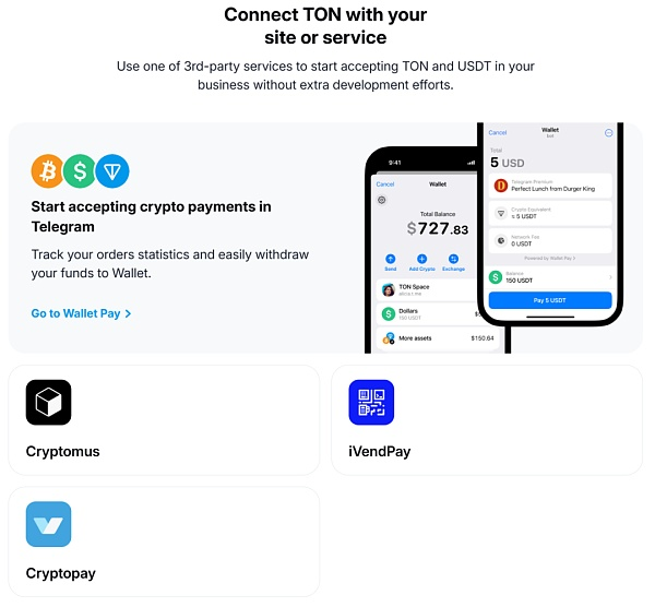 當前,TON已經接入了多個第三方支付服務平台,讓商家能夠以各種方式接受支付。