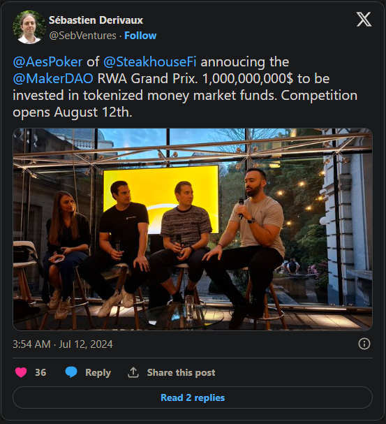 "Superstate's USTB is an ideal partner for MakerDAO," Robert Leshner, founder of Superstate said. "We're excited that MakerDAO is creating an open process where we can introduce USTB to the community."