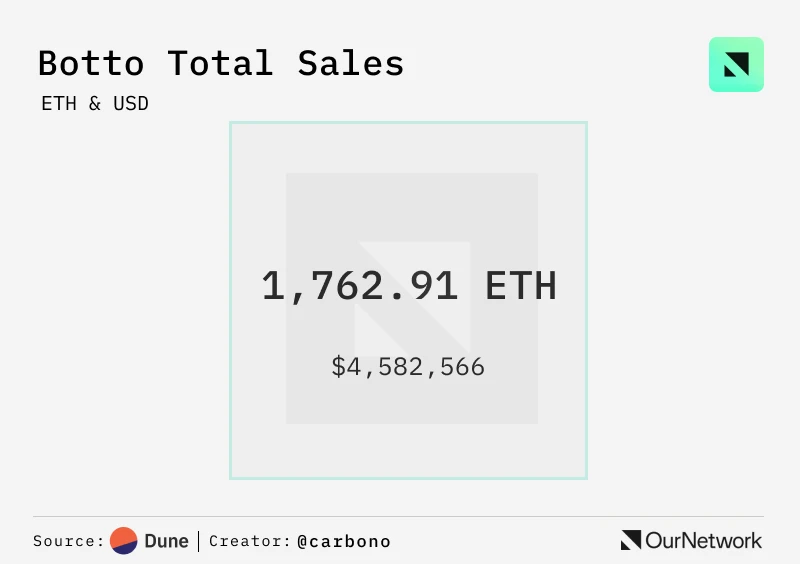 - 交易級別信息:Botto 是一個去中心化治理人工智能的實驗,通過一種經濟設計將價值分配給提供輸入的人。用戶通過投票來獲得訓練人工智能的獎勵。爲了獲得投票點,他們需要購買並質押 BOTTO,或將 BOTTO-ETH 添加到 Uniswap 並質押 LP 股份。爲了獲取獎勵,他們必須主動領取。這需要支付大量的 ETH 費用。Botto 努力追求主流文化相關性,無論是鏈上還是鏈下。一個 L2 生態繫統可能會開啟一個全新的篇章。